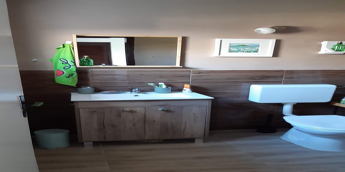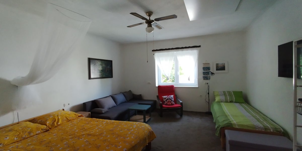 - a 20m² main bedroom / lounge with more clothes and luggage storage; a wall-mounted 43" Smart TV with Amazon Fire Stick; one double bed (140*200cm), a 3-seater sofa bed (120*210cm when extended); two stackable single beds (90*200cm)